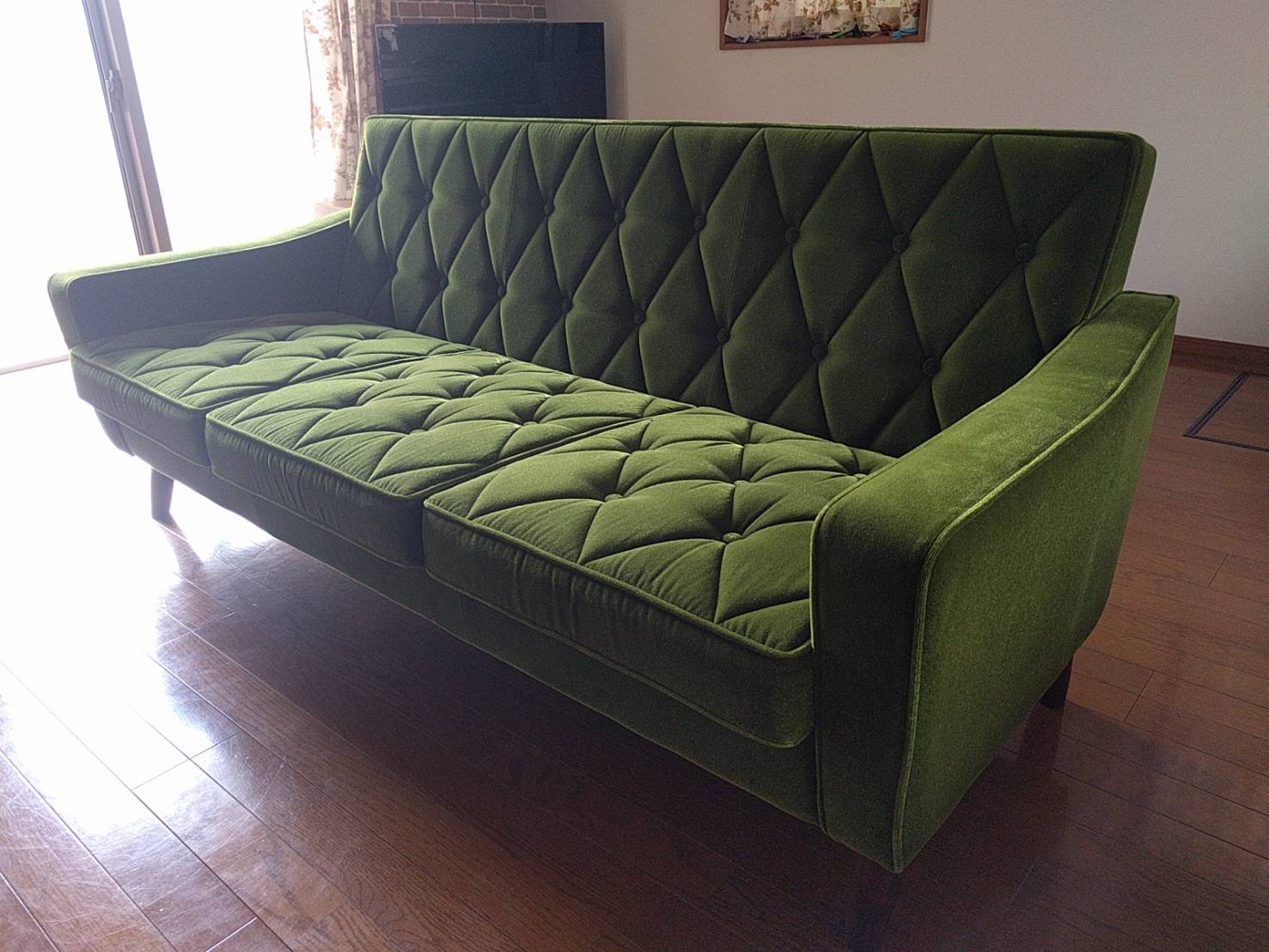 そんな本日は、カリモク60 Kチェア 3シーター(モケットグリーン)を横浜市中区のお客様よりお買取りをさせて頂きました。